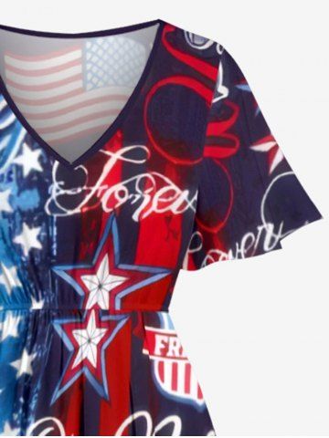 Plus Size Patriotic American Flag Letter Print Split Pocket A Line Midi Dress - Blue - Xxs