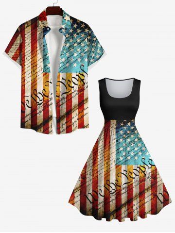 Plus Size Patriotic American Flag Newspaper Print 1950s Vintage Dress - Black - S