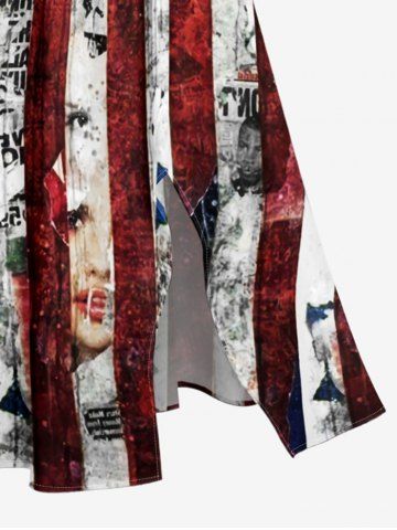 American Flag Dresses > Plus Size Patriotic American Flag Newspaper Print Split Pocket A Line Midi Dress