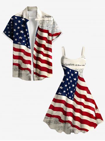 Plus Size Patriotic American Flag Newspaper Print Tank Dress - White - 2x