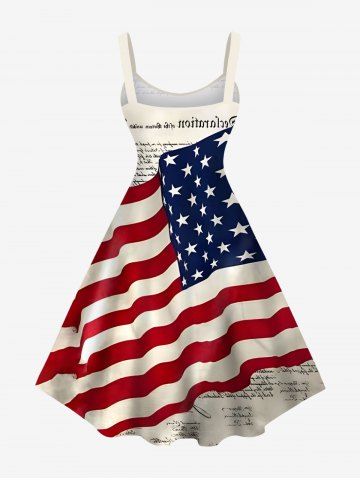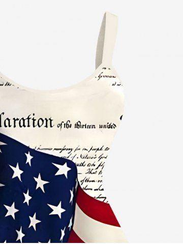 Plus Size Patriotic American Flag Newspaper Print Tank Dress - White - 4x