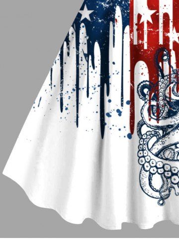 Plus Size Patriotic American Flag Octopus Paint Drops Print Tank Dress - White - Xxs