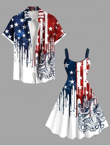 American Flag Dresses > Plus Size Patriotic American Flag Octopus Paint Drops Print Tank Dress