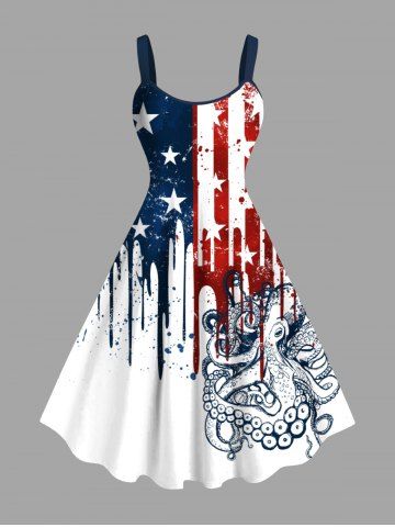 American Flag Dresses > Plus Size Patriotic American Flag Octopus Paint Drops Print Tank Dress
