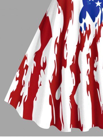Plus Size Patriotic American Flag Paint Brushing Print Tank Dress - White - S