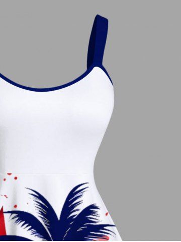 Plus Size Patriotic American Flag Paint Splatter Coconut Tree Print Hawaii Tank Dress - White - Xs