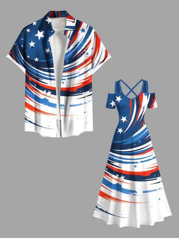 Plus Size Patriotic American Flag Paint Splatter Print Cold Shoulder Crisscross Maxi Dress - White - Xxs