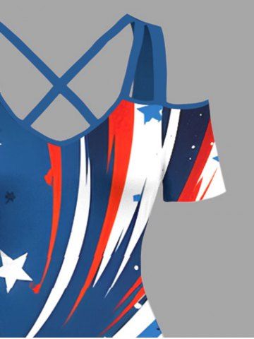 Plus Size Patriotic American Flag Paint Splatter Print Cold Shoulder Crisscross Maxi Dress - White - M