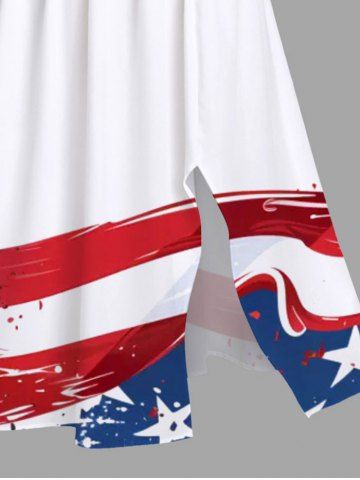 Plus Size Patriotic American Flag Paint Splatter Print Split Midi Dress - White - 1x