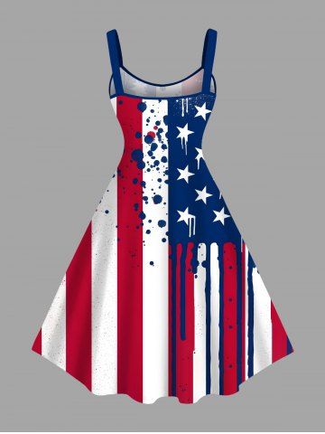 American Flag Dresses > Plus Size Patriotic American Flag Paint Splatter Print Tank Dress
