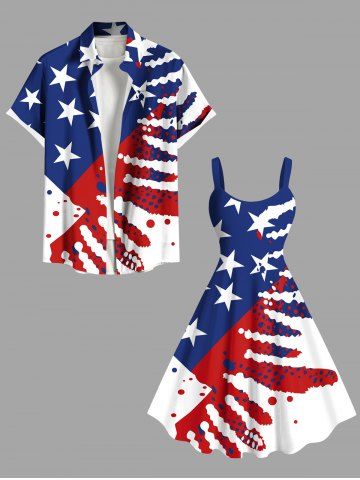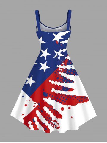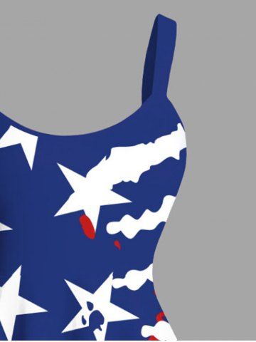 Plus Size Patriotic American Flag Paint Splatter Print Tank Dress - Blue - 1x