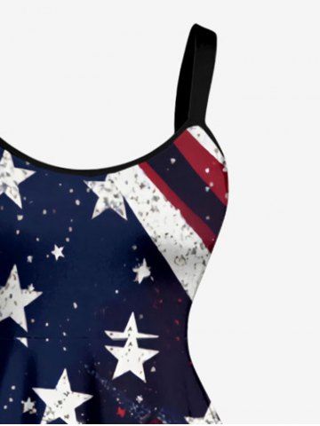 Plus Size Patriotic American Flag Paint Splatter Print Tank Dress - Deep Blue - 3x