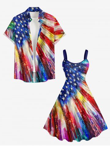 Plus Size Patriotic American Flag Painting Print A Line Dress - Blue - M