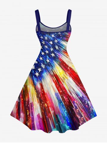 Plus Size Patriotic American Flag Painting Print A Line Dress - Blue - 4x