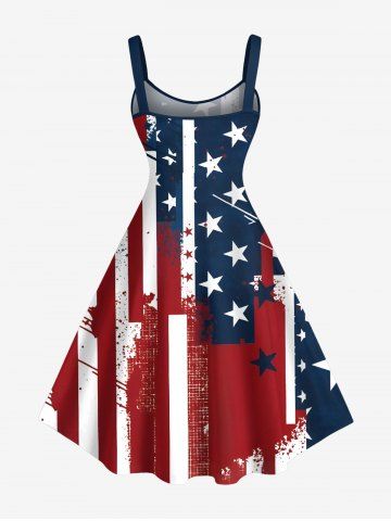 American Flag Dresses > Plus Size Patriotic American Flag Painting Splatter Print A Line Tank Dress