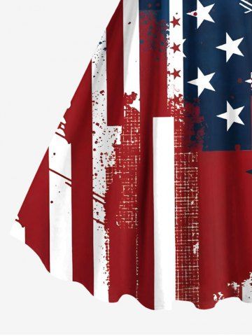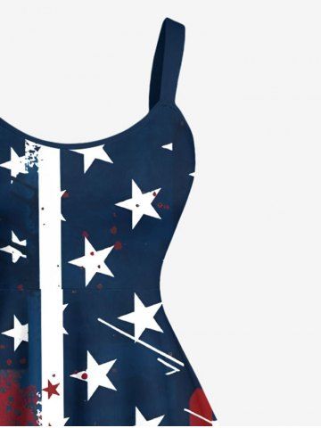 Plus Size Patriotic American Flag Painting Splatter Print A Line Tank Dress - Red - L