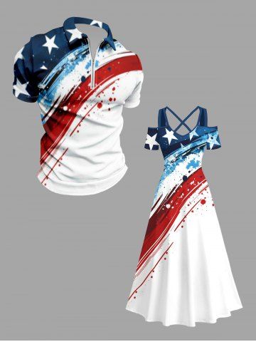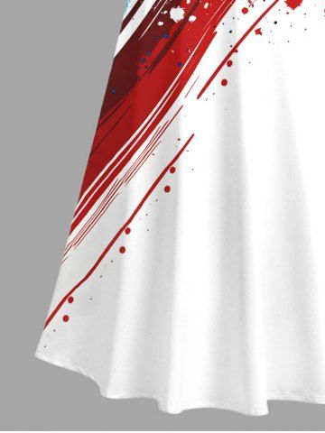 Plus Size Patriotic American Flag Painting Splatter Print Cold Shoulder Crisscross A Line Maxi Dress - White - 3x