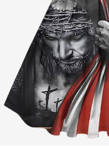 Plus Size Patriotic American Flag Pigeon Print Vintage Swing A Line Dress - Blue - L