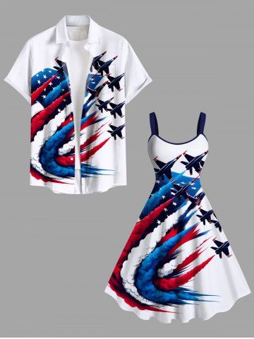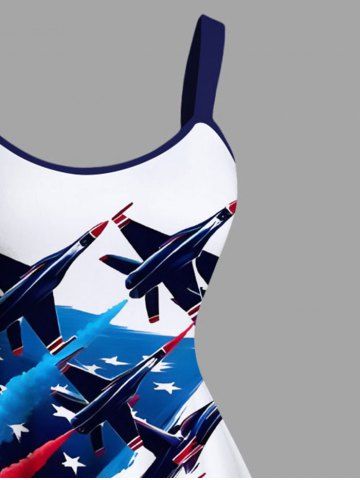 Plus Size Patriotic American Flag Plane Print A Line Tank Dress - White - Xxs