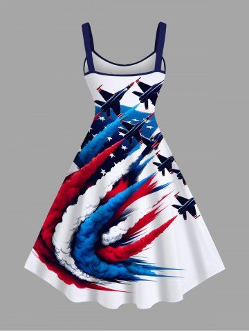Plus Size Patriotic American Flag Plane Print A Line Tank Dress - White - M