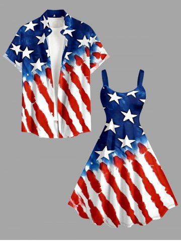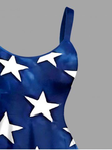 Plus Size Patriotic American Flag Print A Line Dress - Blue - Xs