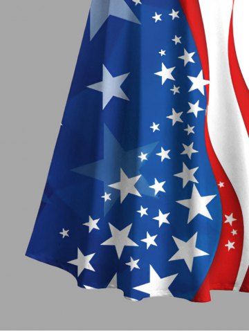 American Flag Dresses > Plus Size Patriotic American Flag Print Cold Shoulder Crisscross Maxi Dress