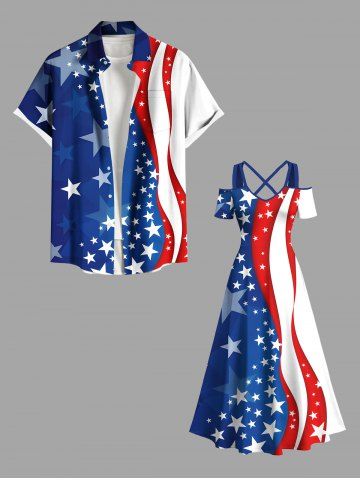 American Flag Dresses > Plus Size Patriotic American Flag Print Cold Shoulder Crisscross Maxi Dress