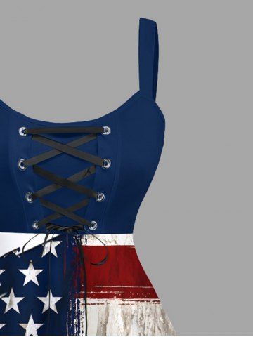American Flag Dresses > Plus Size Patriotic American Flag Print Lace Up Panel Tank Dress