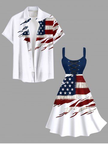 Plus Size Patriotic American Flag Print Lace Up Panel Tank Dress - White - 5x