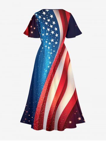 American Flag Dresses > Plus Size Patriotic American Flag Print Split Midi Dress
