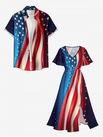 American Flag Dresses > Plus Size Patriotic American Flag Print Split Midi Dress