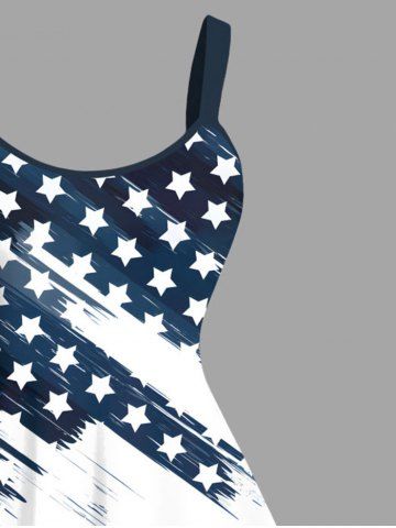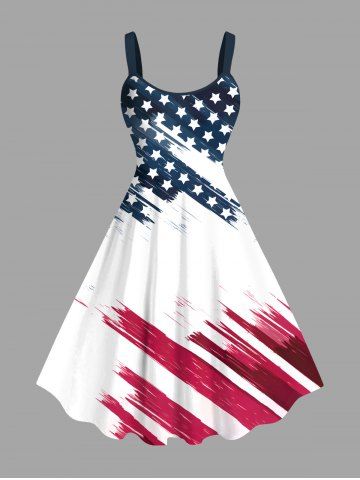 Plus Size Patriotic American Flag Print Tank Dress - White - S