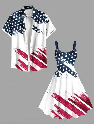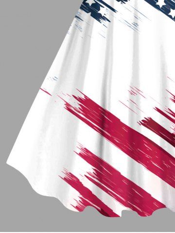 Plus Size Patriotic American Flag Print Tank Dress - White - 4x