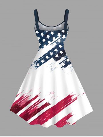 Plus Size Patriotic American Flag Print Tank Dress - White - 5x