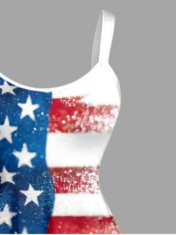 Plus Size Patriotic American Flag Print Tank Dress - Blue - L