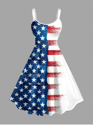 Plus Size Patriotic American Flag Print Tank Dress - Blue - 6x