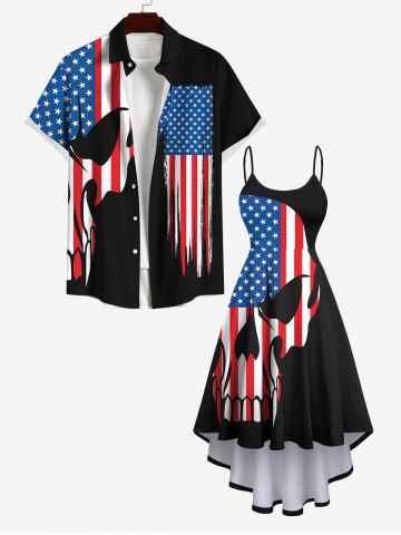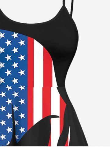 Plus Size Patriotic American Flag Skull Print High Low Cami Dress - Black - 1x