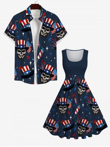 American Flag Dresses > Plus Size Patriotic American Flag Skulls Hat Star Print 1950s Vintage Dress