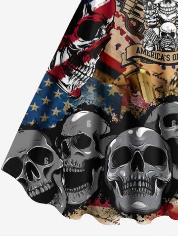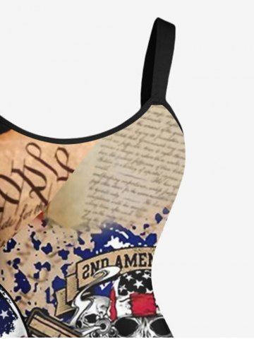 American Flag Dresses > Plus Size Patriotic American Flag Skulls Newspaper Print Tank Dress