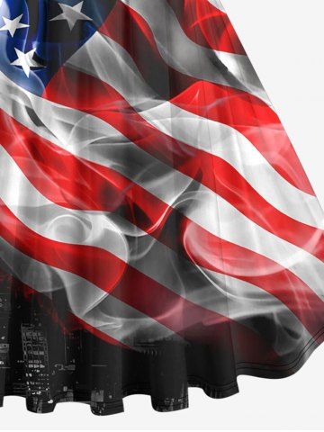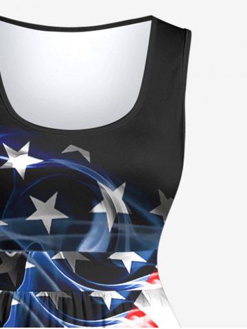 Plus Size Patriotic American Flag Smog Print 1950s Vintage Dress - Black - L