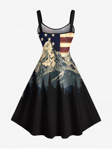 Plus Size Patriotic American Flag Snow Mountain Print Tank Dress - Black - 5x