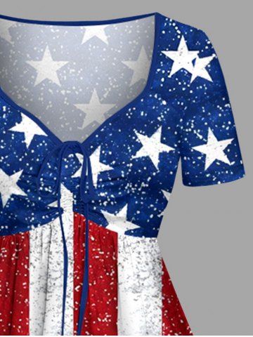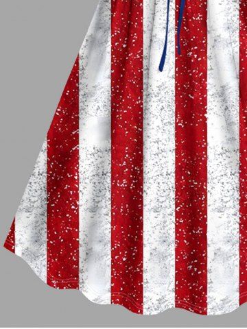 Plus Size Patriotic American Flag Sparkling Sequin 3D Print Cinched Dress - Red - Xxs