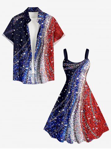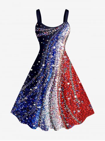 Plus Size Patriotic American Flag Sparkling Sequin 3D Print Tank Dress - Deep Blue - S