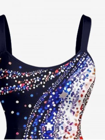 Plus Size Patriotic American Flag Sparkling Sequin 3D Print Tank Dress - Deep Blue - 6x