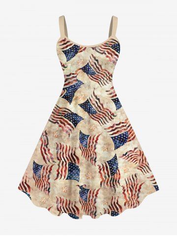 Plus Size Patriotic American Flag Star Print Tank Dress - Multi-a - 6x