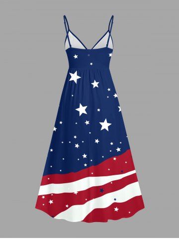 Plus Size Patriotic American Flag Stars Print Surplice A Line Cami Dress - Deep Blue - Xs