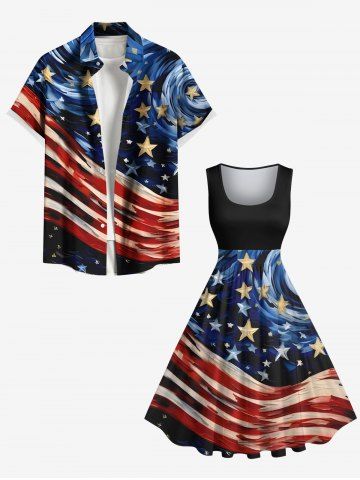Plus Size Patriotic American Flag Swirls Oil Painting Print 1950s Vintage Tank Dress - Black - S