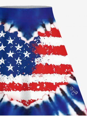 Plus Size Patriotic American Flag Tie Dye Heart Print Split Skirt - Blue - 2x