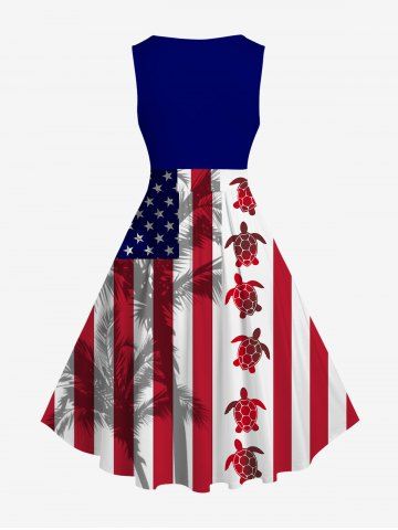 Plus Size Patriotic American Flag Turtle Coconut Tree Print Hawaii 1950s Vintage Dress - Multi-a - 3x