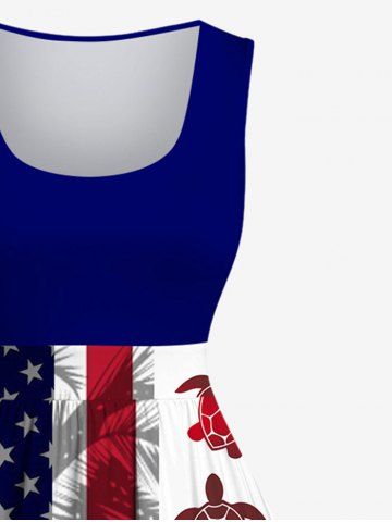 Plus Size Patriotic American Flag Turtle Coconut Tree Print Hawaii 1950s Vintage Dress - Multi-a - 5x